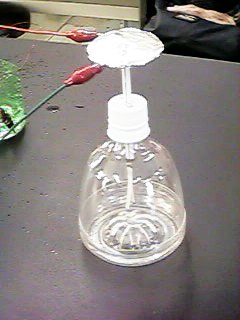ペットボトルで箔検電器も作った。気がついたことは、ボトルの内側などにリンスを塗るとうまくいくなどである。同じくペットボトルで静電気で回るモーターを作った。非常に良く回ります。