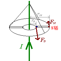 力のモーメントのつりあいより、 、 よって、 となります。 これは力と距離が反比例していること( )を示しています。 棒磁石(磁気双極子)のN極とS極の磁気量の大きさが等しいことを考えると、これは磁場の大きさが電流からの距離に反比例していること( )を示しています。